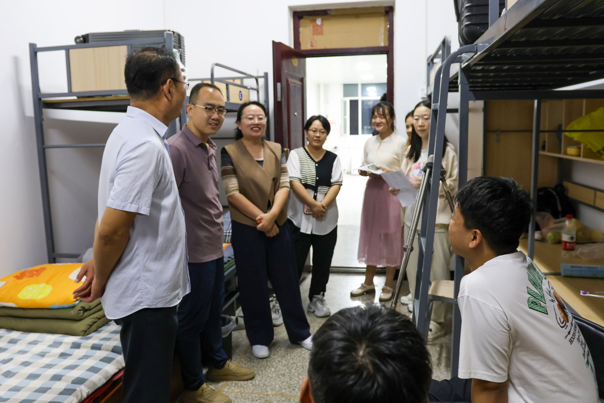 秋风送爽,丹桂飘香。为深入了解新生到校动态,助力新生尽快融入大学生活,9月15日下午,太阳集团tyc4633院长张志伟、学院团委负责人花磊、电子信息工程教研室主任张婵、通信工程教研室主任白伟华及新生辅导员一行深入雅涵苑6号、7号学生公寓楼,开展新生走访检查工作,为新同学送上新学期的真挚问候与温暖关怀。