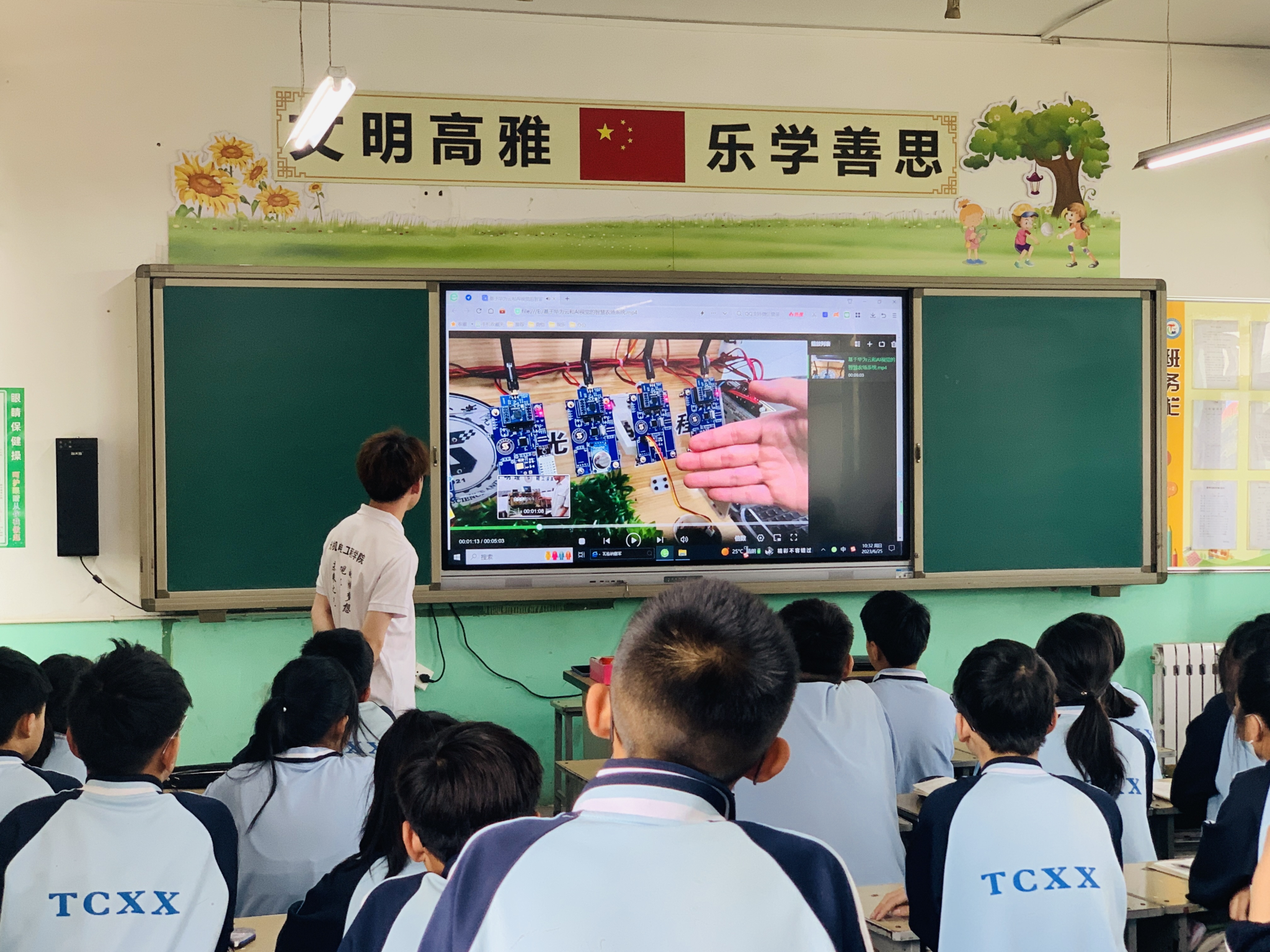 6月26日,“青春耕耘”团队走进吕梁市交城县覃村学校进行“光电小车进校园,托起少年科技梦”宣讲活动,以趣味科普问答、小车实物展示、视频讲解等多种形式展示智能循迹避障小车搭建与编程知识。宣讲活动让当地孩子们“零距离”感受电子科技的魅力,让他们在“试一试”“想一想”中体验科学带来的快乐,进一步开阔科技视野,培养独立思考、积极动脑动手的科学素养。