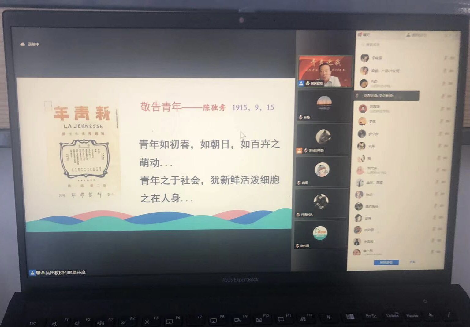 此次培训邀请到中央团校教授、青年运动研究中心主任吴庆教授做专题培训,培训内容分别是《中国共青团与中国青年运动》、《共青团组织建设历程及经验启示》。校团委全体教师与我校全体团干部共同参与培训,会上我校团干部与吴庆教授积极互动交流。